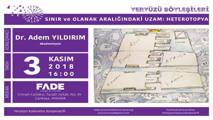 Dr. Adem Yıldırım "Sınır ve Olanak Aralığındaki Uzam: Heterotopya" başlıklı söyleşiyle ile 3 Kasım 2018 Saat: 16:00'da FADE stage & coffee'de bizimle olacak.
